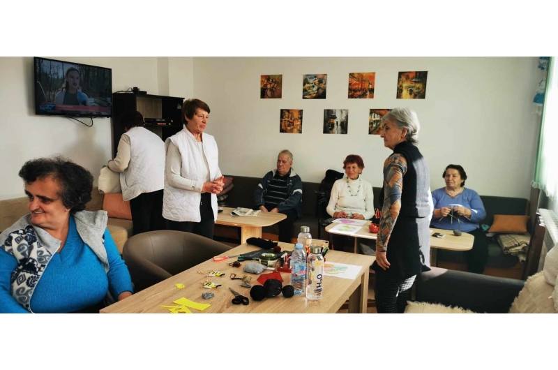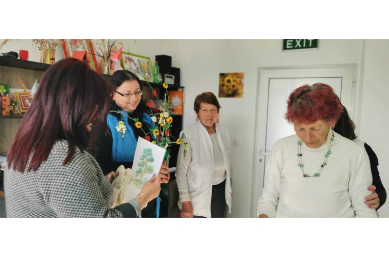 Хората от дома благодариха за посещението и дариха дамите с рисунки и чорапи, изработени от тях.