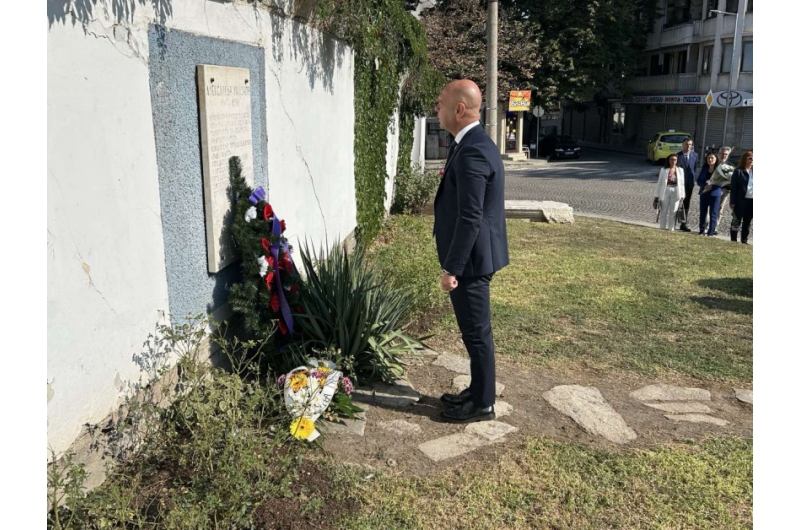 Кметът Костадин Димитров и официалните лица поднесоха венци и цветя пред паметната плоча на Александър Малинов.